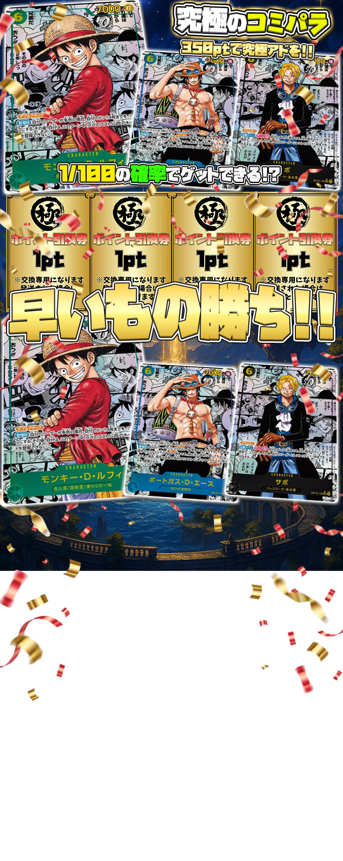 ガチャを回すにはポイントが必要です。. ポイントを購入してください.